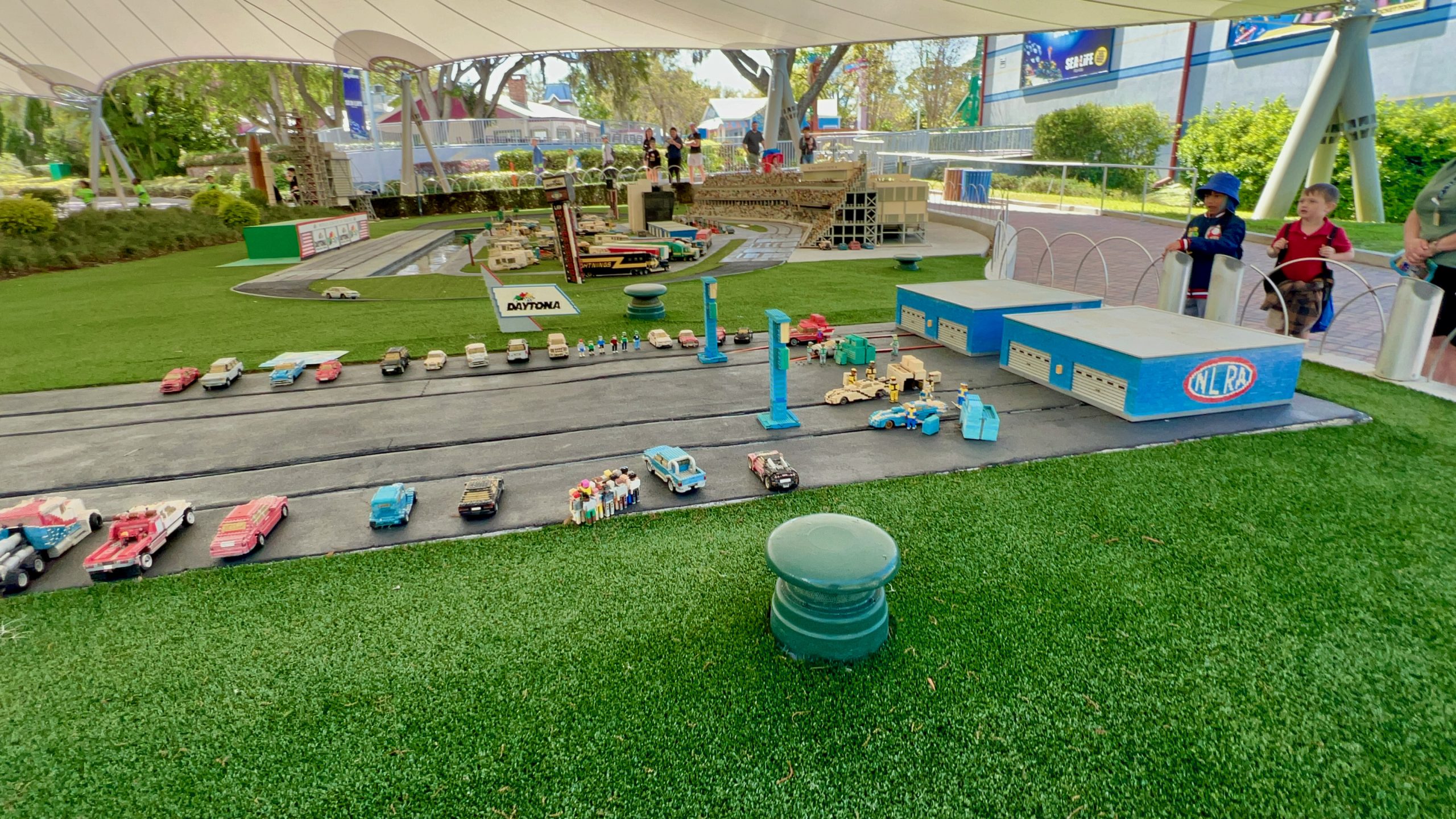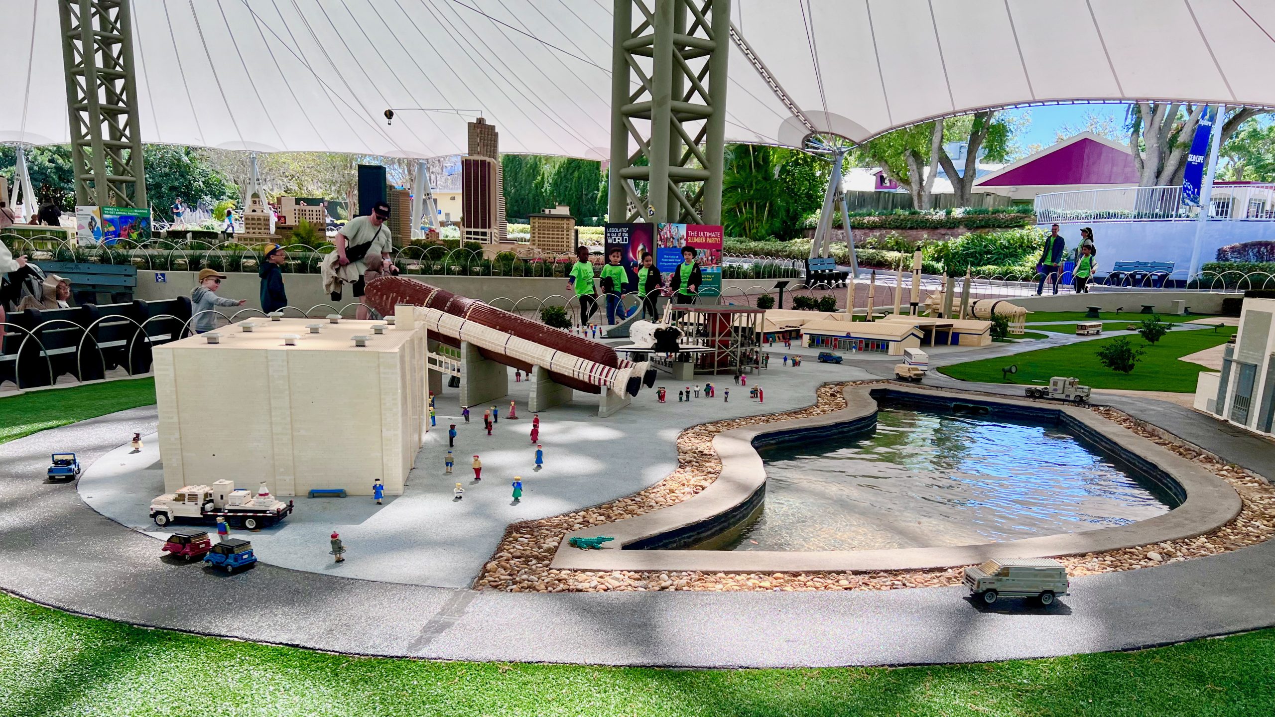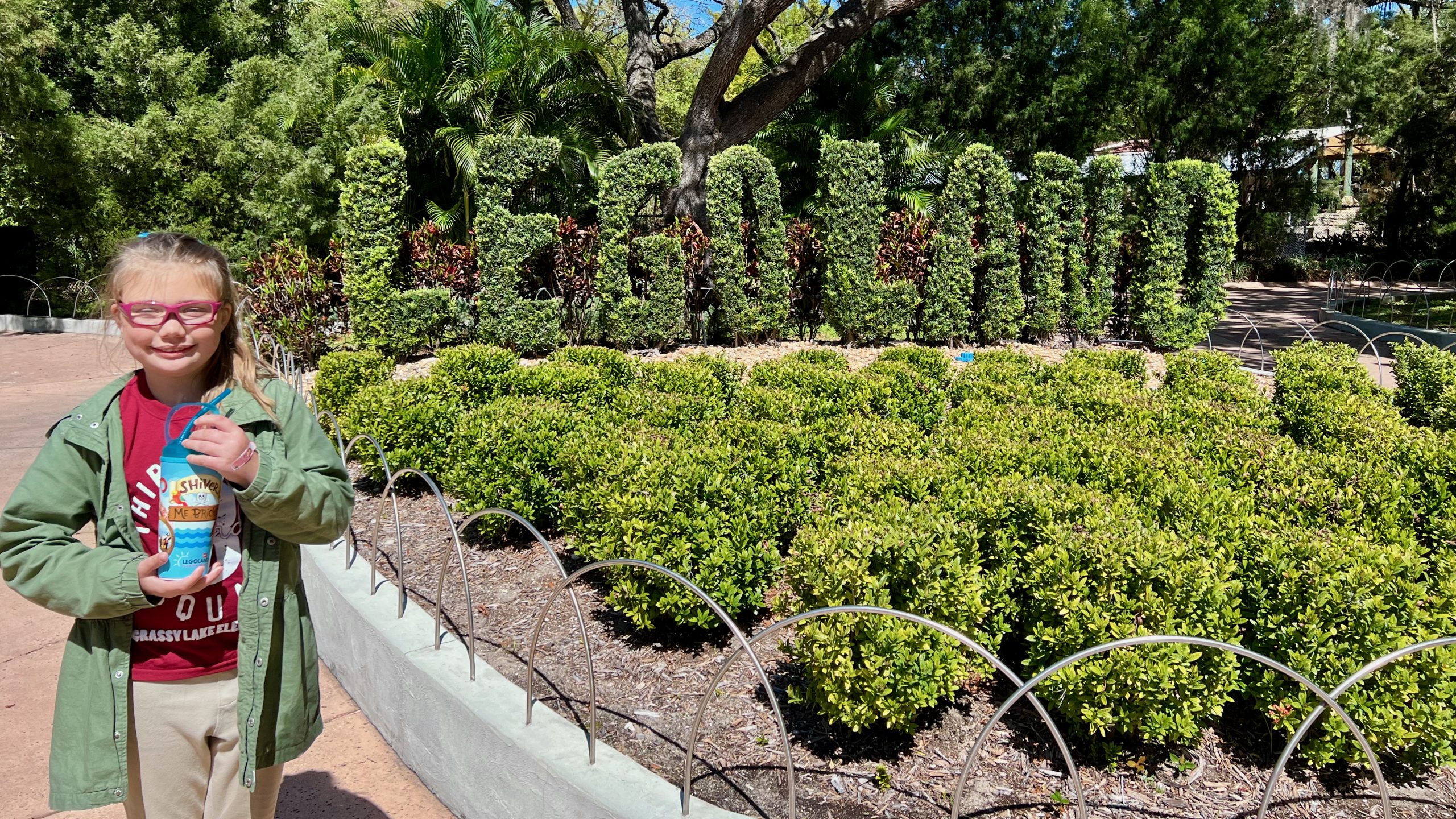Once we arrived and made it through security, I had to stop and take in the iconic LEGOLAND Florida sign. Seeing it in person was really cool—yes, a bit weather-worn, but still just as impressive up close. That welcome sign made entirely of LEGO bricks is such a fun detail and really sets the tone for what’s inside.