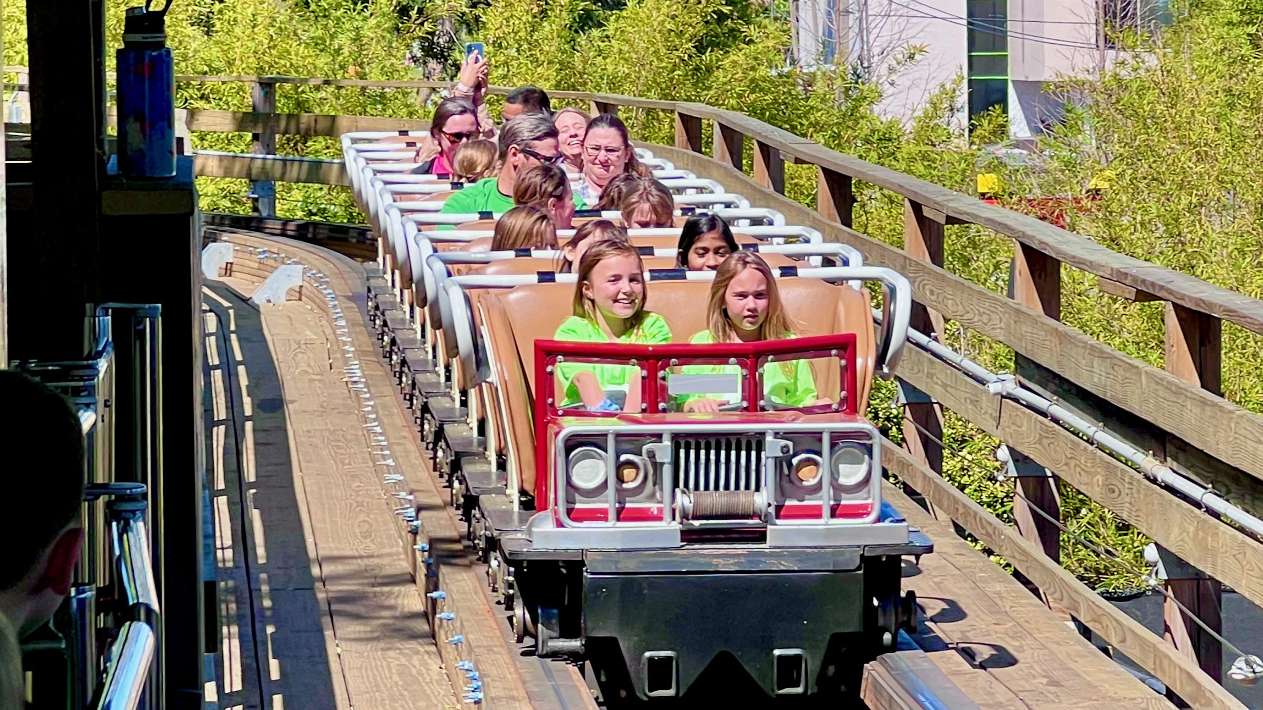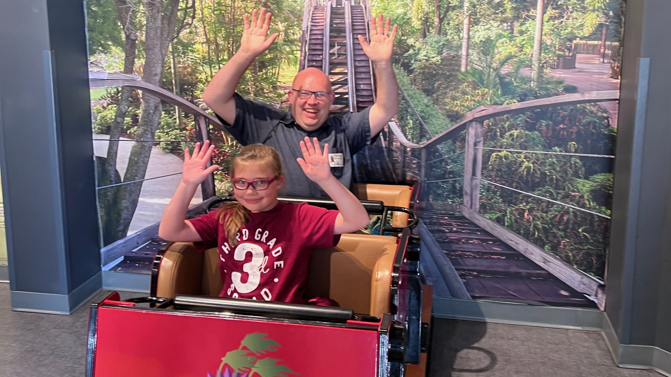 Then came a big moment—Charlee decided she was ready to try her first coaster of the day: Coastersaurus. This wooden coaster has a rich history, dating back to its Cypress Gardens days. Charlee was nervous, but once we got to the top of the lift hill, she held on tight—and after that first drop, she was all smiles and laughter. That ride flipped a switch in her. She was hooked.