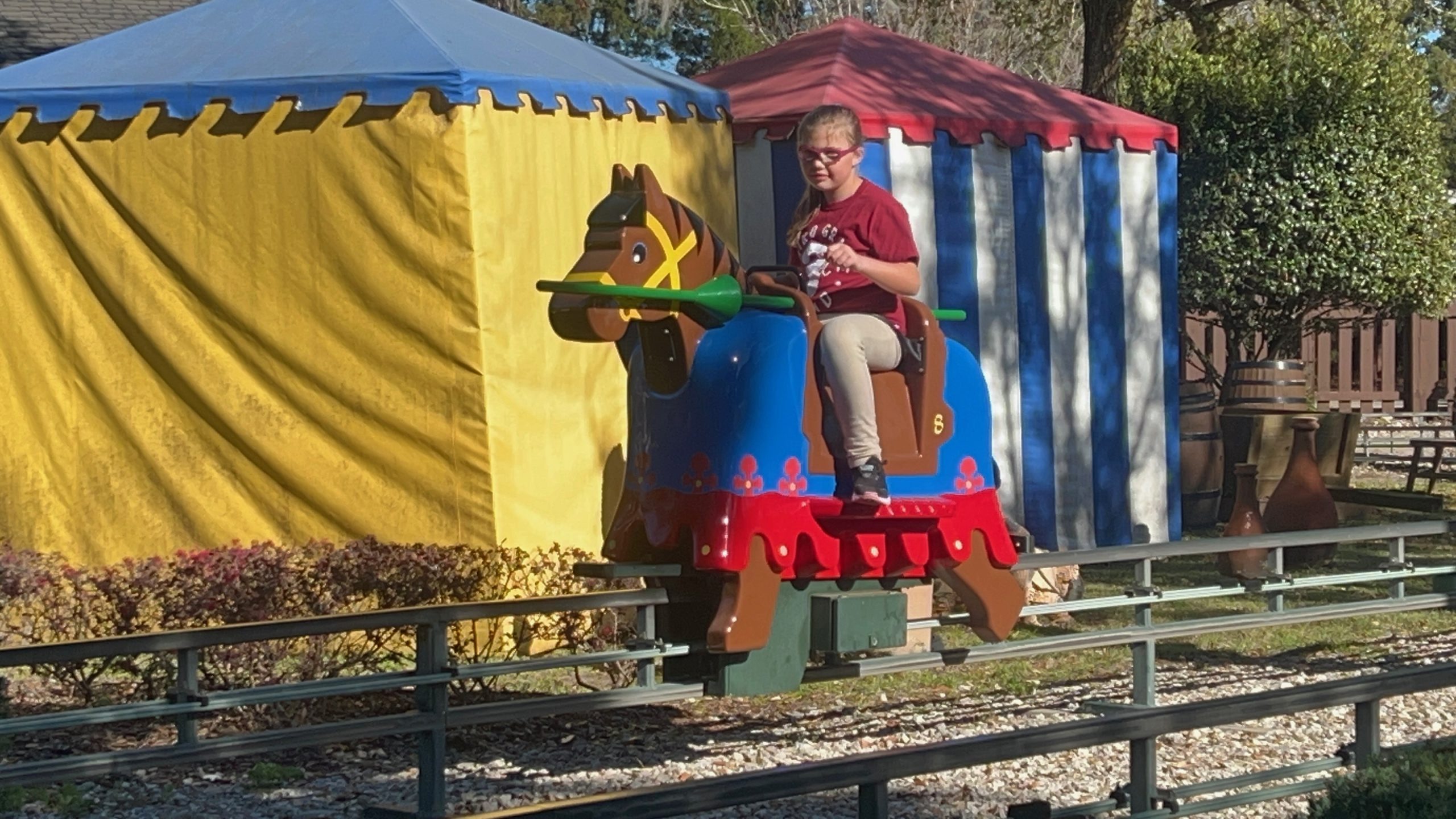With the field trip winding down, the teacher headed back to meet the group while we had a bit more time since I had already signed Charlee out. We squeezed in a couple more rides—Royal Joust, which she absolutely loved, and Merlin’s Challenge, a fun spinning ride where we both laughed the whole way through.