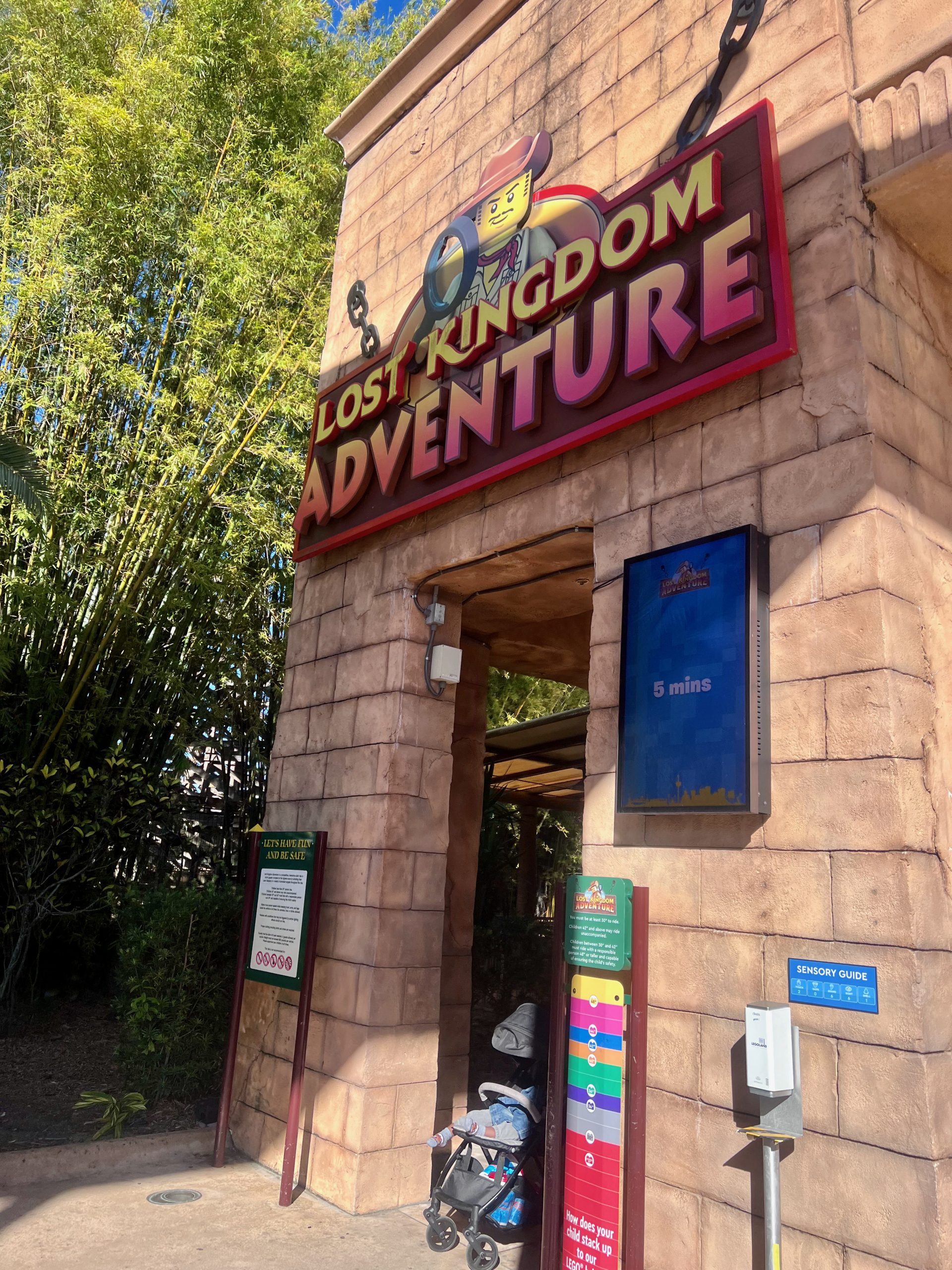 On our way back through the park, we stopped at The Dragon Coaster gift shop and picked up some ice cream from a freezer bag. From there, we made our way to the Land of Adventure to ride Lost Kingdom Adventure, a classic dark ride where we blasted LEGO mummies and skeletons with laser blasters. It had that retro Sally Corp. charm, and Charlee thought it was wild fun.