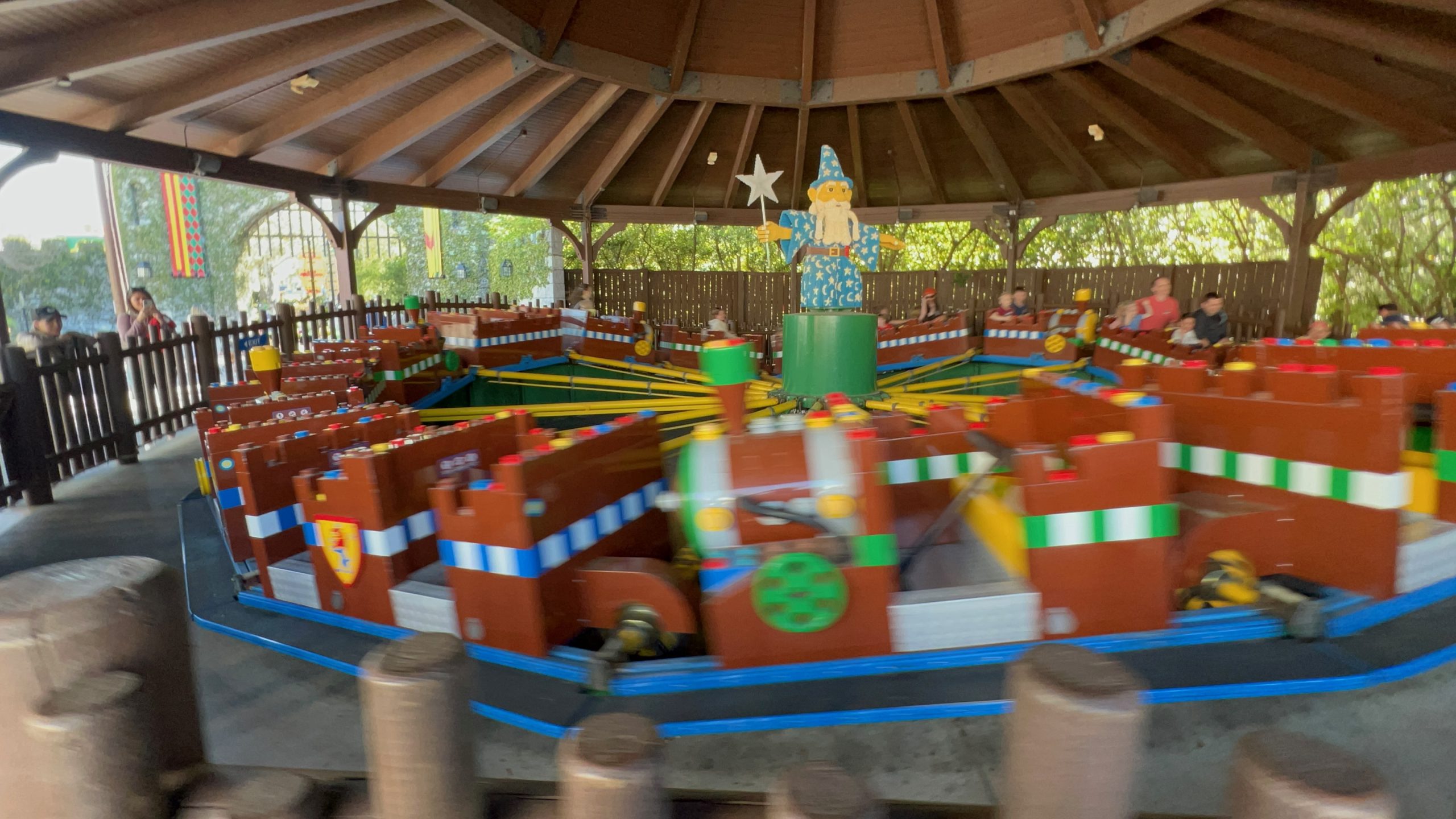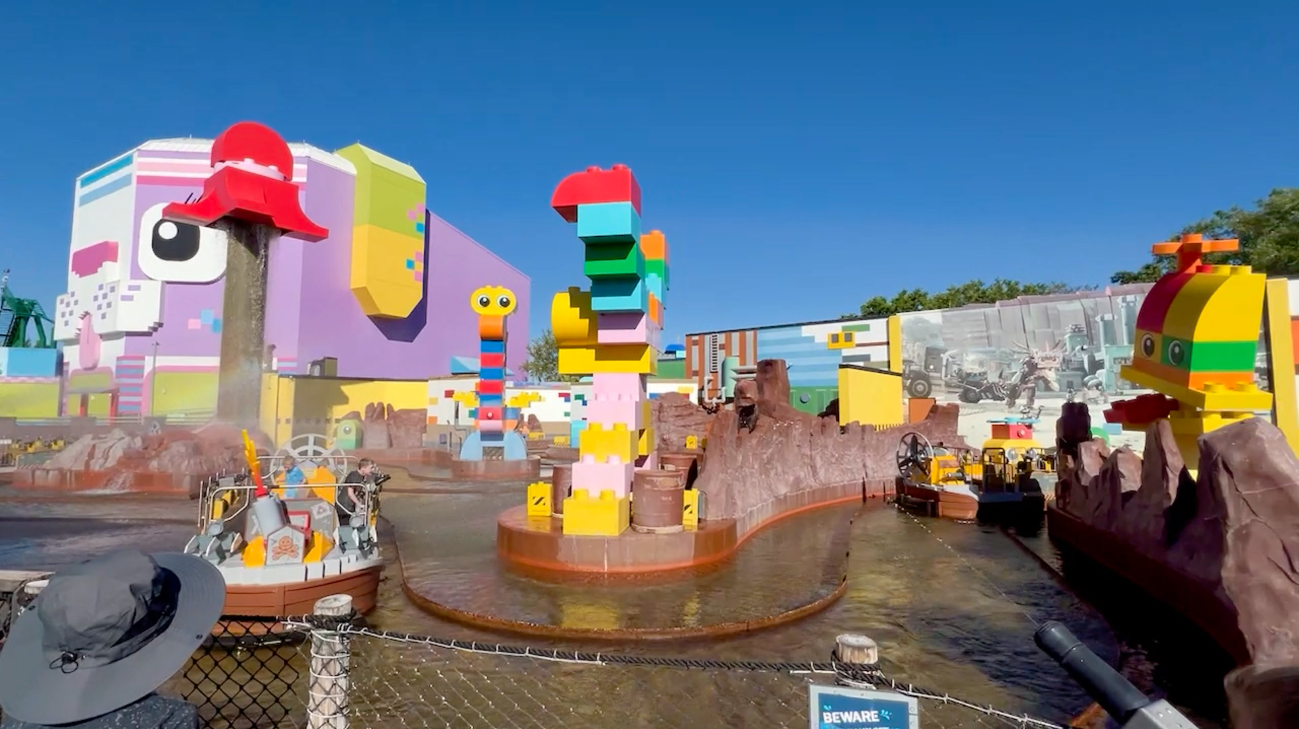 After lunch, we made our way into LEGO NINJAGO World. It’s a smaller section but full of energy. We rode LEGO NINJAGO The Ride, where you use hand motions to launch animated fireballs, lightning, and more at virtual villains. The motion-control system takes a little getting used to, but it was such a fun, unique ride.