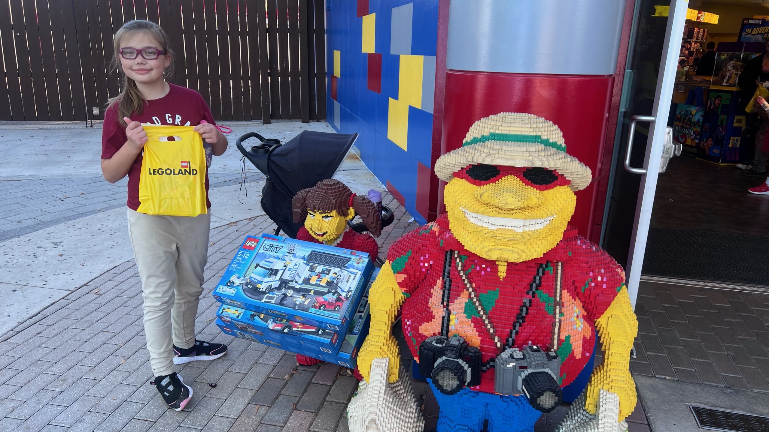 Next, we stopped at LEGO City’s Driving School. Charlee was determined to drive a yellow car, and she made it happen. The whole ride lasts about two and a half minutes. She did well, although she may need a little more practice before hitting a real road—especially after going the wrong way through the roundabout. It was hilarious and adorable.