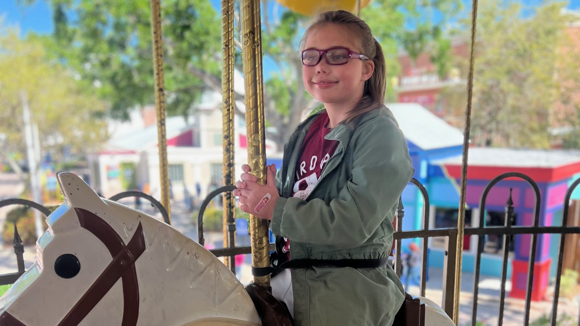 After meeting up with Charlee’s class, we kicked things off with the Grand Carousel. It’s a charming double-decker carousel, and we rode on the second level for a great little overview of the park. It was a gentle way to ease into the day.