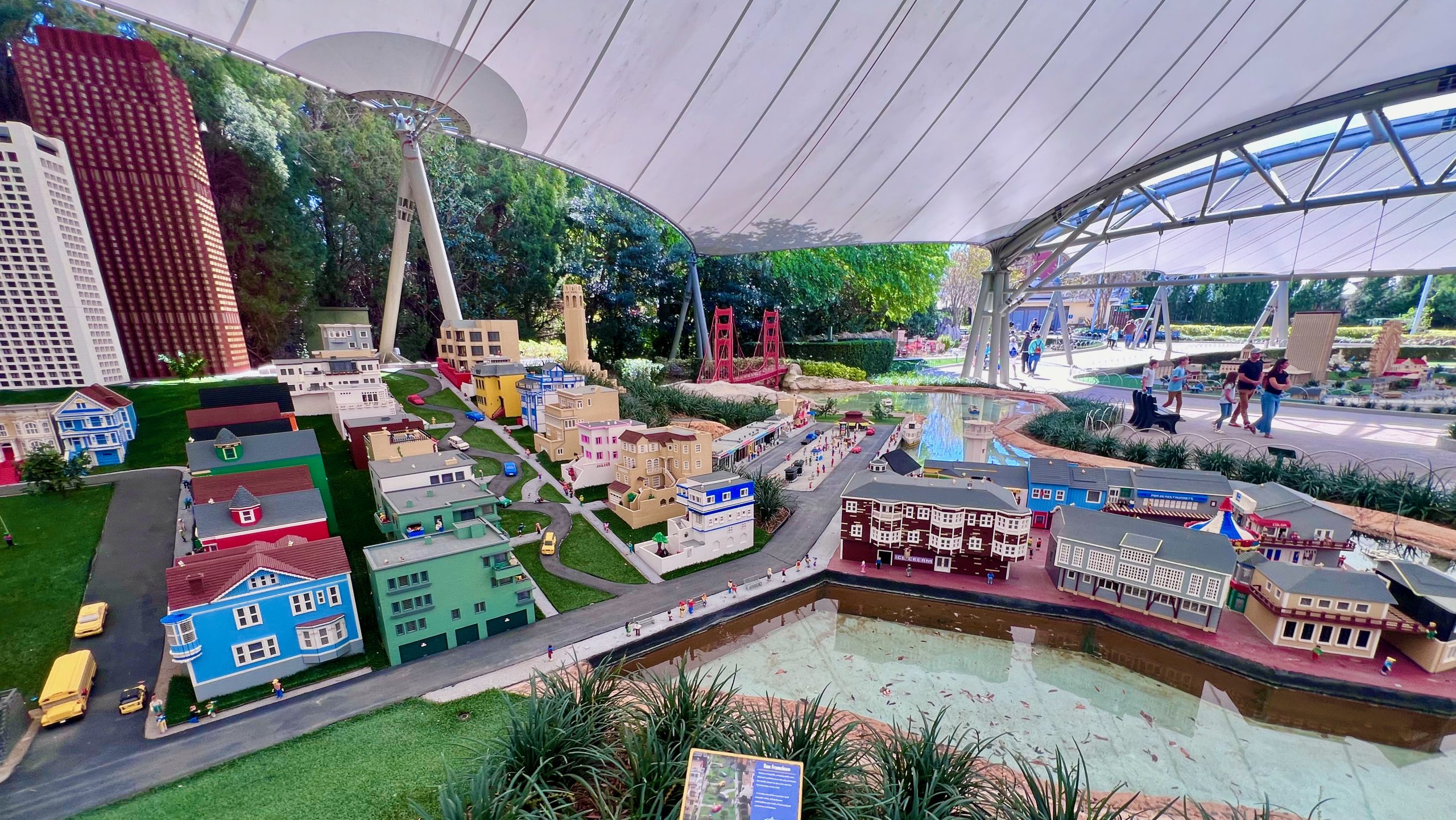 Then came one of my favorite parts of the park—Miniland USA. The detail here is incredible. Entire cities and landmarks made from LEGO bricks, complete with interactive buttons that make cars drive, fountains spray, and little scenes come alive. While I could’ve spent much more time here, we kept things moving for Charlee’s sake—she was eager to do more rides.